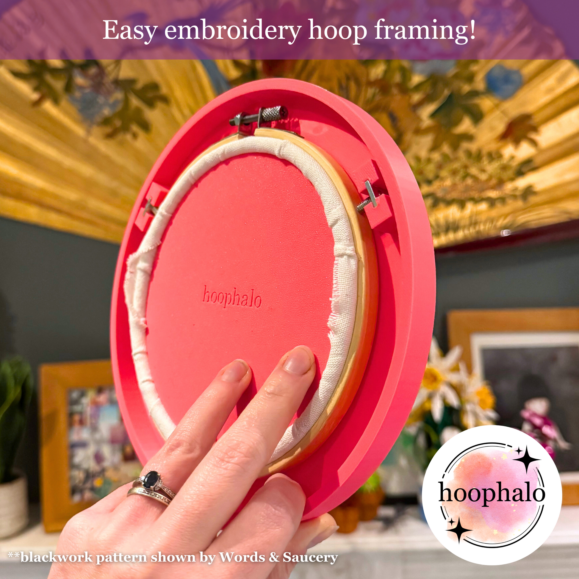 Showcase your cross-stitch or blackwork with this easy to fit frame. Whether you’re gifting your work, decorating your space, or finishing to sell - this frame provides a polished, professional finish. Just pop your hoop in the back, adjust the screws to hold it in firmly, and you’re set!
